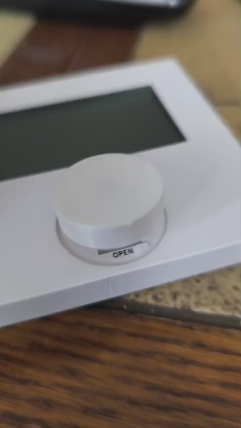 Praktischer Ersatz-Drehknopf passend für Möhlenhoff Wandthermostate. Ideal bei Verlust oder Defekt des Originalknopfs. Einfacher Austausch dank passgenauer Konstruktion – kein Werkzeug erforderlich. Gefertigt aus robustem Kunststoff in elegantem Weiß, fügt sich der Knopf nahtlos in das bestehende Design Ihres Thermostats ein.